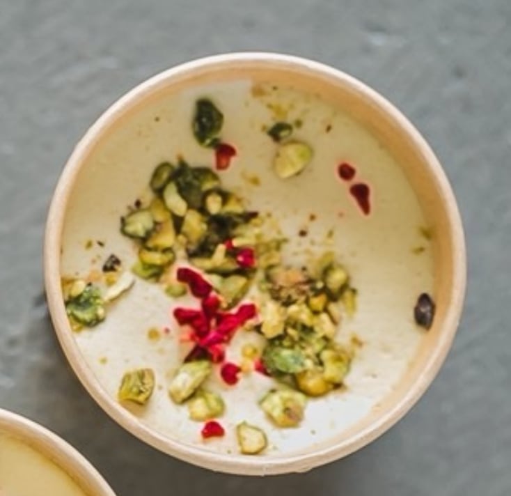 シチリア産ピスタチオペーストと自家製のリッチなクリームを贅沢にブレンドした、濃厚な味わいのひんやりスイーツ。シチリアブロンテ産ピスタチオペーストをふんだんに使用した、口の中でとろけるような食感が楽しめる一品です。