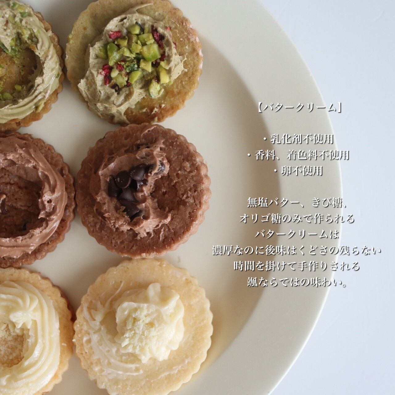 国産米粉(九州産)を使用したサクホロ食感の新しい味わいのバタークッキーに、添加物を使わずに丁寧に乳化させたバタークリームをサンドした颯~SATSUKI~ならではの米粉バターサンドです。